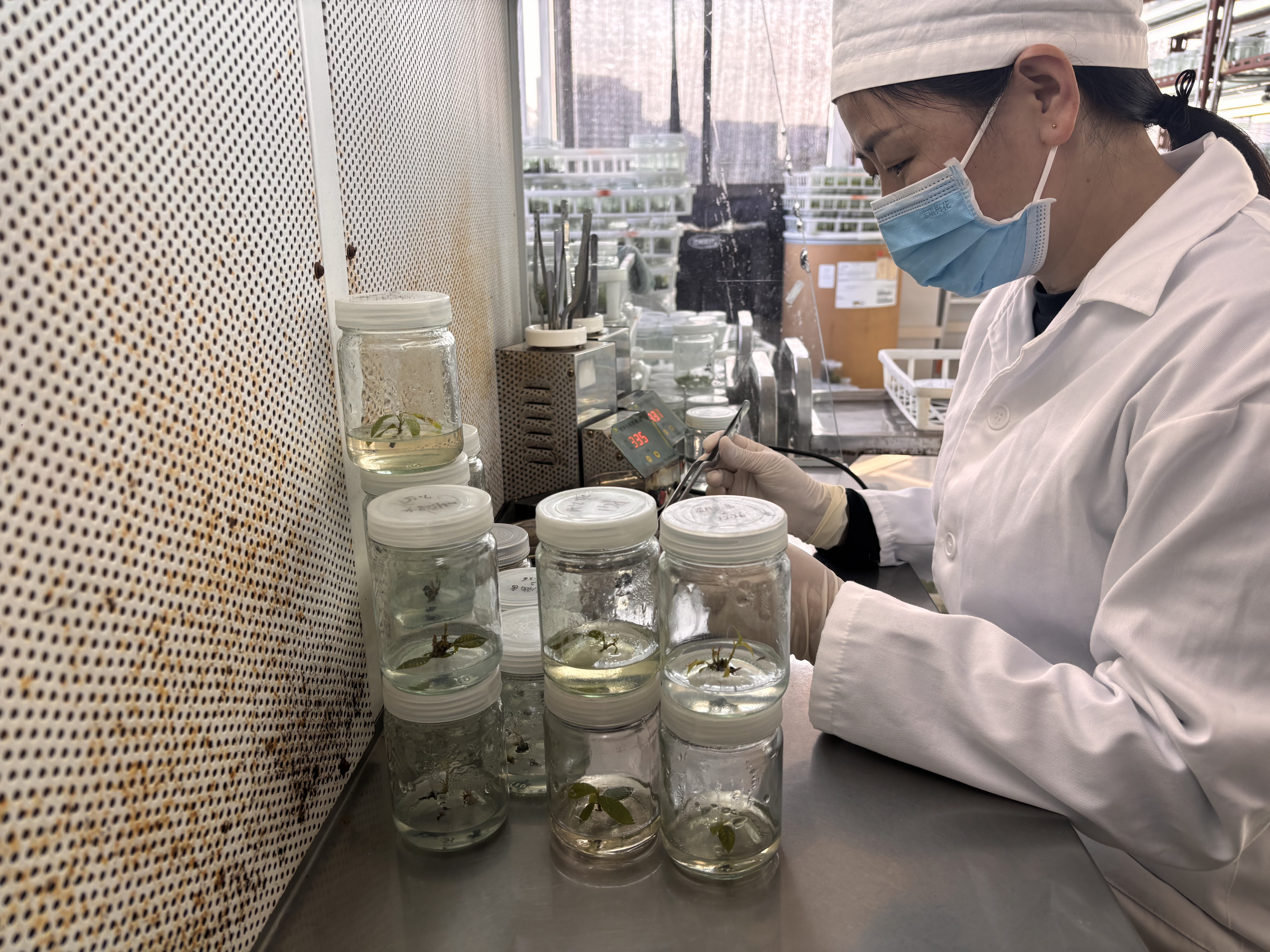 具翼龙脑香组织培养,技术员正在转接继代增值苗。